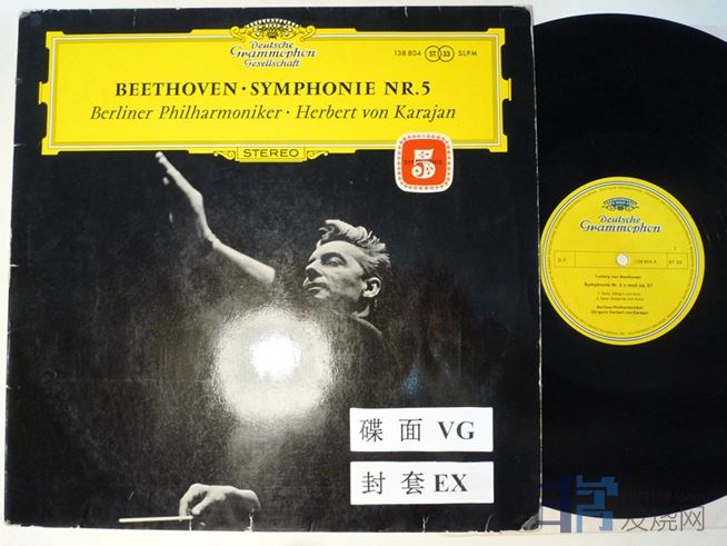 卡拉扬指挥贝多芬第五交响曲“命运”,DG德国压片,碟面的表面细纹多,播放有底噪和炒豆声,10块