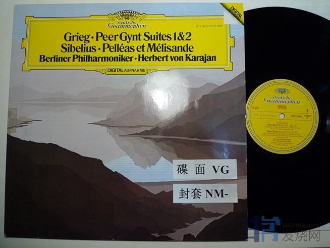 格里格第一、第二号“皮尔.金特”组曲,西贝柳斯“佩利亚斯与梅丽桑德”,两面都有划痕,第一面有一处跳针,DG数码录音,德国压片,20块
