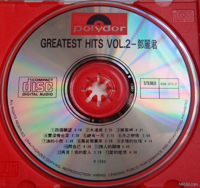 邓丽君GREATEST HITS VOL.2 韩国T113-02透明胶圈版CD