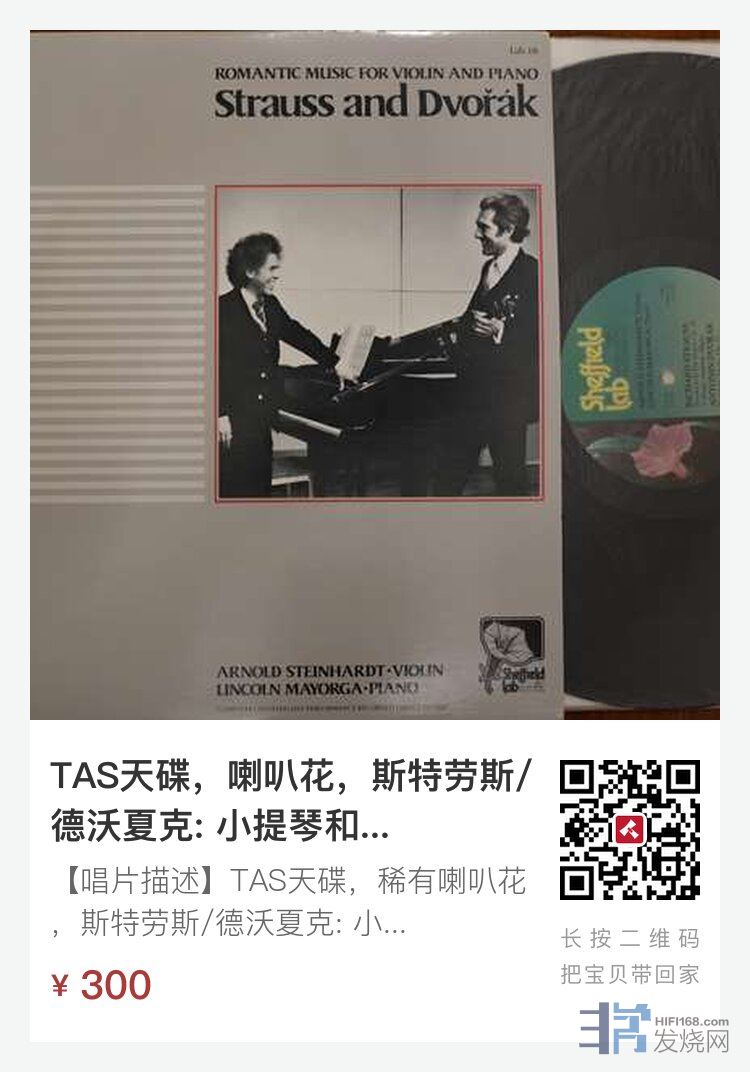 【唱片描述】TAS天碟,稀有喇叭花,斯特劳斯/德沃夏克: 小提琴和钢琴浪漫音乐,阿诺尔德·斯坦哈尔特/林肯马友佳,SHEFFIELD LAB喇叭花美首版NM