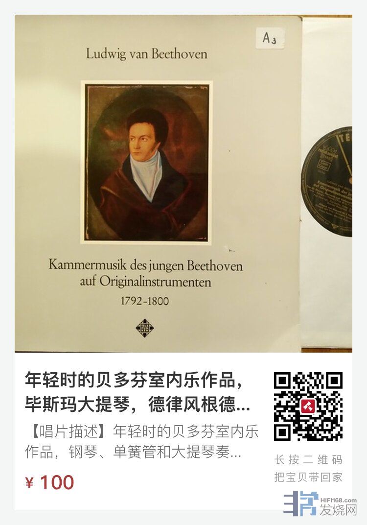 【唱片描述】年轻时的贝多芬室内乐作品,钢琴、单簧管和大提琴奏鸣曲/钢琴与圆号奏鸣曲/2支长笛的快板和小步舞曲/双簧管、三角琴、巴松管奏鸣曲,毕斯玛大提琴等,TELEFUNKEN德律风根德国黑金标首版,NM
