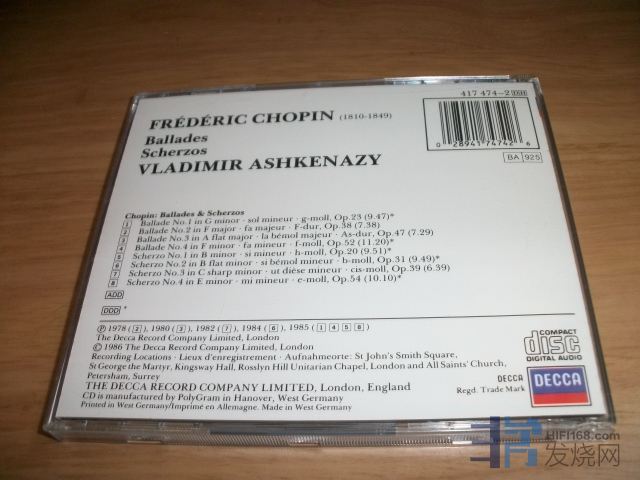 阿什肯纳吉 肖邦 叙事曲诙谐曲 德版银圈 品相如新110元