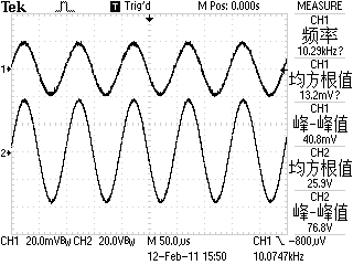 1khz的正弦波、三角波和方波。增益约65db