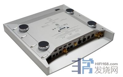 Klimax DSM的箱体纤薄,但是底板向下突出,藉此争取更多箱内空间。底板上标示内中具备独家Space Optimisation空间校正与最新版Dynamik交换式电源供应技术。背板上的印刷字样,竟然也是在Linn自家工厂手工印制的。