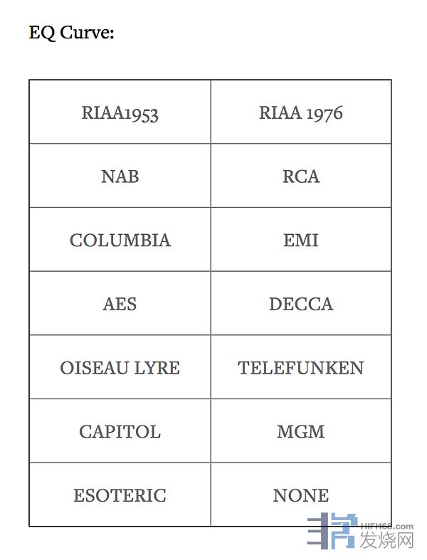 • 对于黑胶唱片,有多种RIAA均衡曲线可选,用以适应老唱片