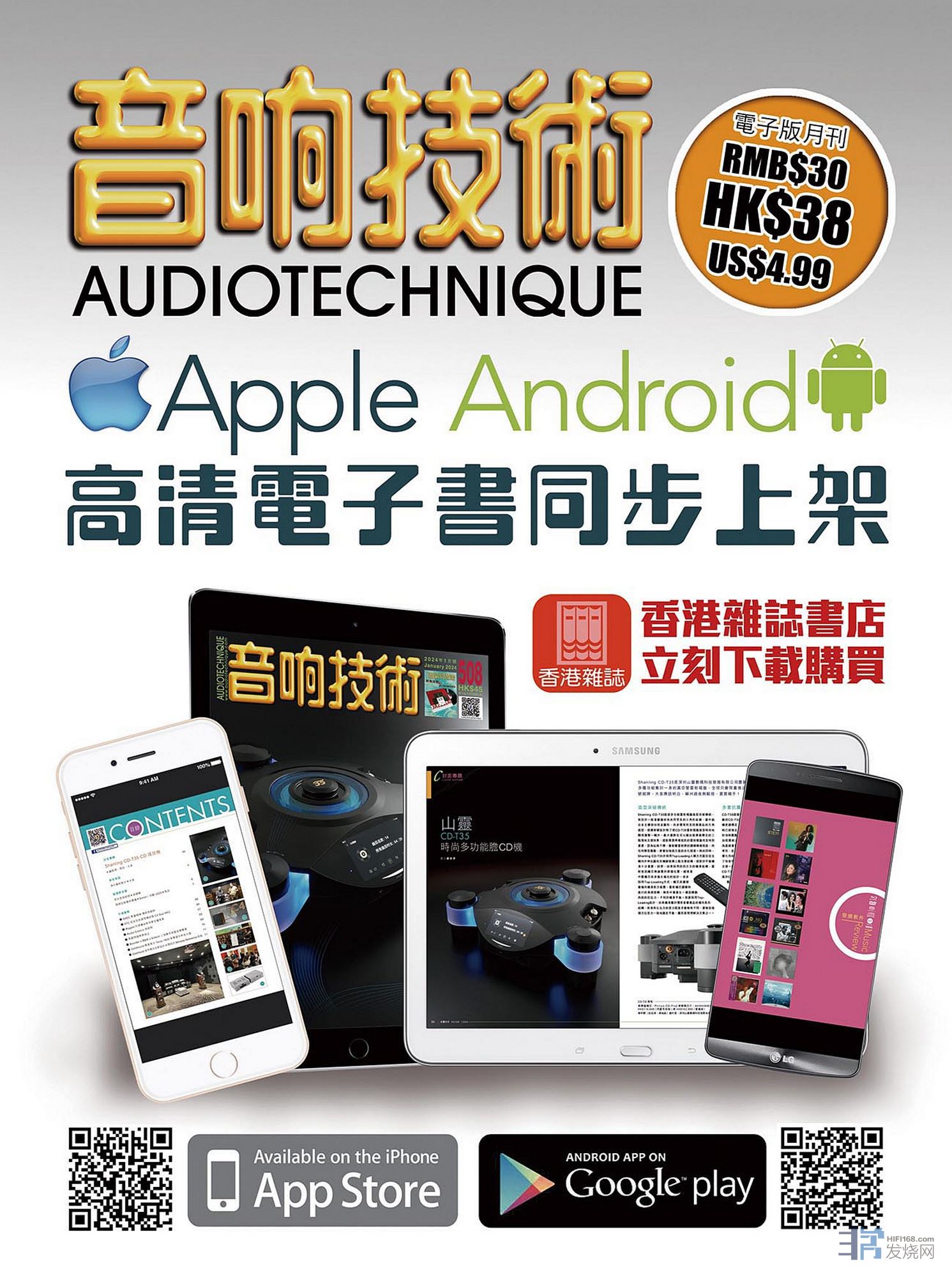 【音响技术】书刊在全港书报摊、音响店、CD店铺有售,而外地的读者除可透过订阅之外,亦可考虑购买电子版,【音响技术】已于Apple Store及 Google play两大电子平台登陆,欢迎选购是月新书或补购过往期数。