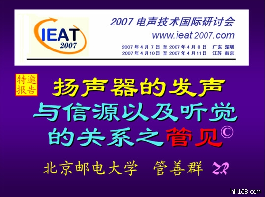 2007年4月有幸参加了“IEAT2007电声技术国际研讨会”,会议中的各项报告内容让我获益良多,其中管善群教授的