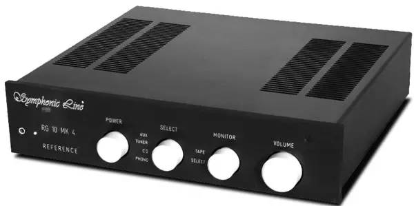 RG14 Edition合并式放大器黑色的面板,释放出的冷调子显得时尚而得体,有着德国品牌最为熟悉的元素,稳重大方做工精细。RG14 Edition的前面板增设了电源开关、信号源选择、监听选择和音量调节四个圆形操作旋钮,左下方是耳机输出插座,右上方是遥控信号感应窗。RG14 Edition的设置很实用,背部设有丰富的RCA非平衡模拟信号输入端子和输出端子,拥有4组高压输入。另外,对于喜欢用LP的玩家而言,其内置有MM/MC唱头放大电路,同时还可以作为前级输出、录音监听输出和耳机放大输出端口,能比较系统地支持数码/ 模拟信源的需要。如果你认为必要在自己的放大部分另外增加更大功率的后级,没问题,在RG14 Edition的身上,考虑到的实用性真的很广泛,这对于发烧友来说已经足够。而功能上带来的操作也很方便,音量调节、信源切换、录音切换和电源开关均采用旋钮切换的方式来操作,用户在使用时,那种统一协调的步骤,不容易搞混。机器内部,左边区域是圆柱形不锈钢的屏蔽盒,内里是多绕组环形变压器,右侧偏中区域集中了整流、滤波和稳压等电路的双单声道结构后级放大电路,后方区域集合了MM动磁唱头放大、前级放大和耳机放大等电路的长条形电路板。所输入的模拟信号,经运算放大器放大后被送到微电机驱动的电位器进行增益调整以控制音量。后级放大电路采用对称的双单声道设计,8Ω时输出功率达到120W。RG14 Edition是RG14特别版本,Edition版本采用了同高级机种相同400VA的MU合金屏蔽变压器,是其好声与优异驱动力的保证。RG14 Edition虽然标称120W(8Ω),但实际听下来,其驱动力相当优异。