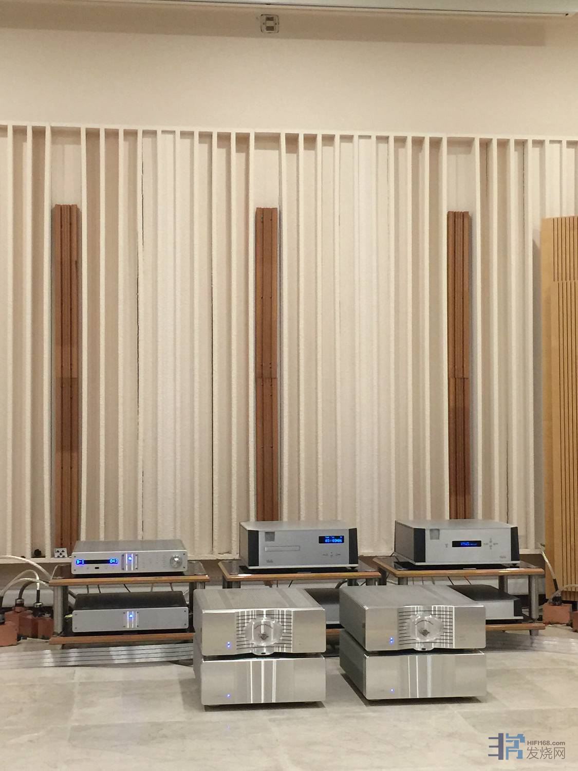 2017.9.29.《江门欣赏记》听说林生刚从美国回来,故乐林8t,李大师,深度扫描,去南泉拜访林生听音室。其实在江门发烧界里有着许多传奇人物,林生可算是一位了,他投入心机专注打造了一间标准尺寸40多平方的别墅式听音室,按照声学原理装修得富丽堂煌,安静舒适环境。林生对空间和器材要求的标准是要有精准的三维结像,同时有清澈透明而不臃肿的中频,能够分辨出音调和动态中细微的差异,可见要求极高。做在听室里面空气清新,适宜欣赏音乐。先放一张极为靓声的飞利浦金线版《美岛丽MlD0Rl》小提琴拉奏帕格尼尼,柴可夫斯基小协,这张碟表现相当靓声,能拥有丰满的高频空气感,层次分明,速度恰到好处,空间残响生气活泼,与室内灯光互相辉映,此女拉小提琴内在潜质超高,气质高贵优雅,琴声要比其他版本更加迷人和引人入胜。李大师放入一张《阿诺德》交响乐清丽脱俗,音乐感更是清新又带点润泽,气势可是无匹的,爆发力表现过关,非比寻常。美国Eggleston Works Andra III大音箱之风范就是好,爆棚气势相当从容。听完几张碟仍是感觉意犹未尽。播放《马勒第三交响曲》磅礴气势出现时往往会收干后级的力水,二个乐章之后,发现美国krell EVO旗舰one独立四分体单声道后级,斯文淡定,场面低频时,舞台气息连绵不绝,阵阵的低频涌现,堂音是既结实,而充满密度,细节也较多,轻松过关。“三、一、七”比例摆位,很容易做好三维空间感,效果OK。继续法雅《三角帽》芭蕾舞曲,只要听女高音与后面人声够不够场感,够了,女高音定位稍往前,和声往后,与舞者形成一个差距,管弦乐衬托中,爆烈金属质感,乐器音色很甜,没有太过吵耳,堂音和音场较为宽广,质感不错,听来充满活力。过瘾。林生是下了真功夫,从器材到线材样样试了又调,器材组合相当壮观:设备有:美国怀念旗舰WADIA971+922+933转盘解码时钟。前级是美国KRELL EVO 202高级二分体电源前级+美国krell EVO旗舰one独立四分体单声道后级+美国Eggleston Works Andra III大音箱+美国音乐丝带旗舰奥丁电源线及喇叭线+专线电源处理插座+加拿大范天神FDII音响HIFI架子,整套系统发挥得其有水准,久听不愿离开,感谢林生招待。
