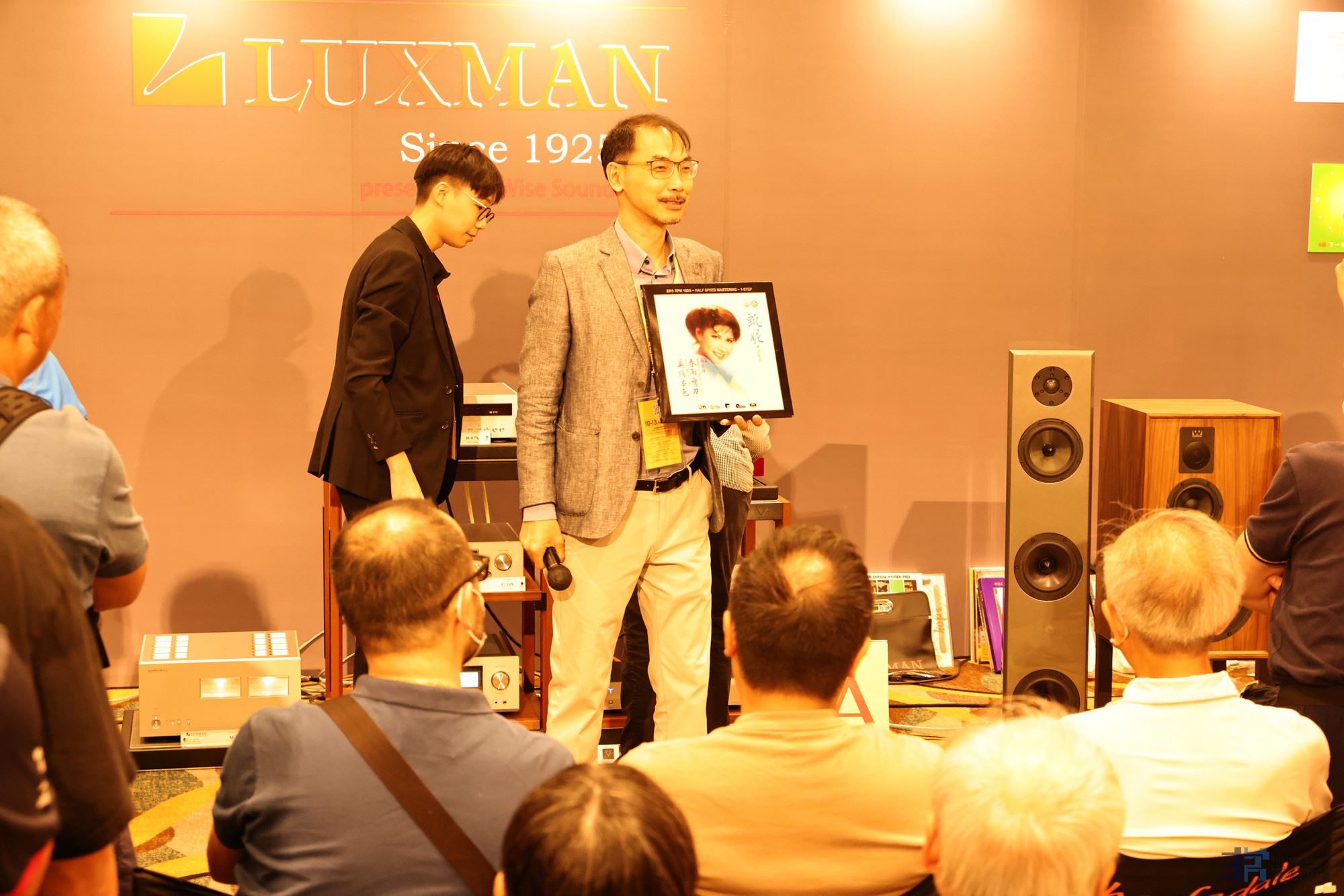 2023香港高级视听展上,风行唱片林总在给发烧友介绍《春雨弯刀》UHPLP。