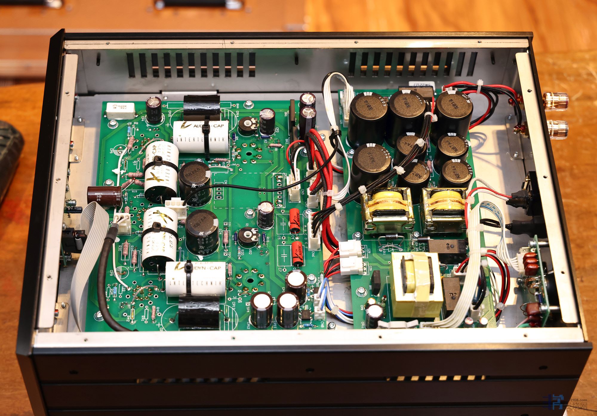 M88机内的电阻及电解均为定制品及发烧级产品,耦合电容采用德国Audyn plus系列,内部连线均为丽确自制单晶铜线。