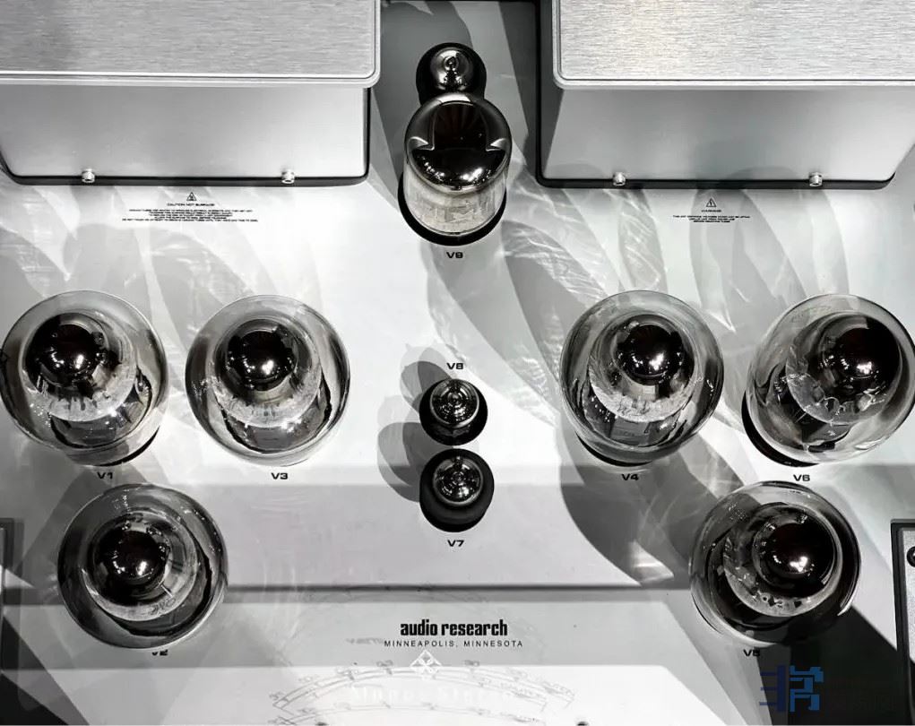 单声道后级Reference 330M,每声道用上6支KT170作功率放大,可以提供330W的输出功率。除了那6支KT170外,还有其他的用管。输入级用上ECC83和6H30各一支,由ECC83先进行电压增益,经过增益后,再通过一组特殊双极晶体管进行阻抗缓冲后输出。电源供应的稳压线路,它分两路进行。在前端供电采晶体管稳压,在驱动级和输出级采真空管稳压,用上6550和6H30各一支。整体线路架构就如同Audio Research一直以来所坚持的,采用全平衡的架构。全新的架构在低阻抗下有着超越以往的输出和控制能力,带来了更宏大也更精致的场面感。