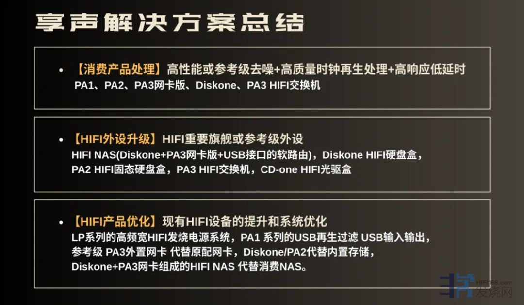 为此,享声针对各环节优化,规划了PA1、PA2、PA3、Diskone等一系列对应的核心产品,用户可根据需求选择对应功能模块的设备。
