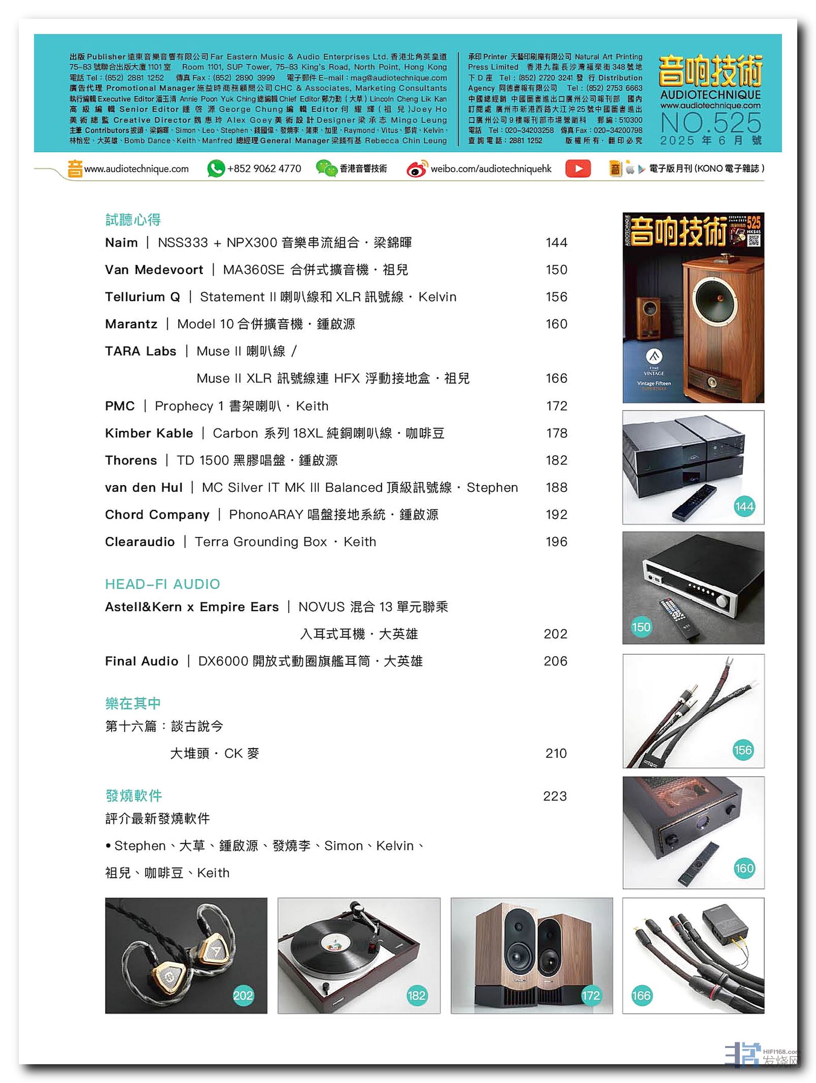 van den Hul MC Silver IT MK III Balanced顶级讯号线、Chord Company PhonoARAY唱盘接地系统、Clearaudio Terra Grounding Box、Astell&Kern x Empire Ears NOVUS 混合13单元联乘入耳式耳机、Final Audio DX6000开放式动圈旗舰耳筒。