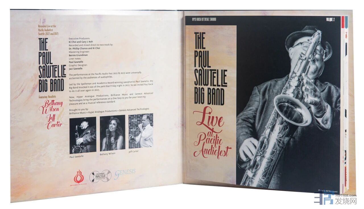 手头这套双45转的The Paul Sawtelle Big Band(保罗·索特尔大乐队)现场录音爵士乐黑胶唱片:《HYPER MUSIC REFERENCE STANDARD VOLUME 2》 很难播好,因为它不仅是非常考验黑胶唱盘、唱臂、唱头、唱放的素质,包括功放和音箱系统、听音环境都是极大的考验!系统一般的发烧友,可以直接放弃这套黑胶,而限量3000套,每套200美金的售价,注定也不是一般系统的发烧友会去买。