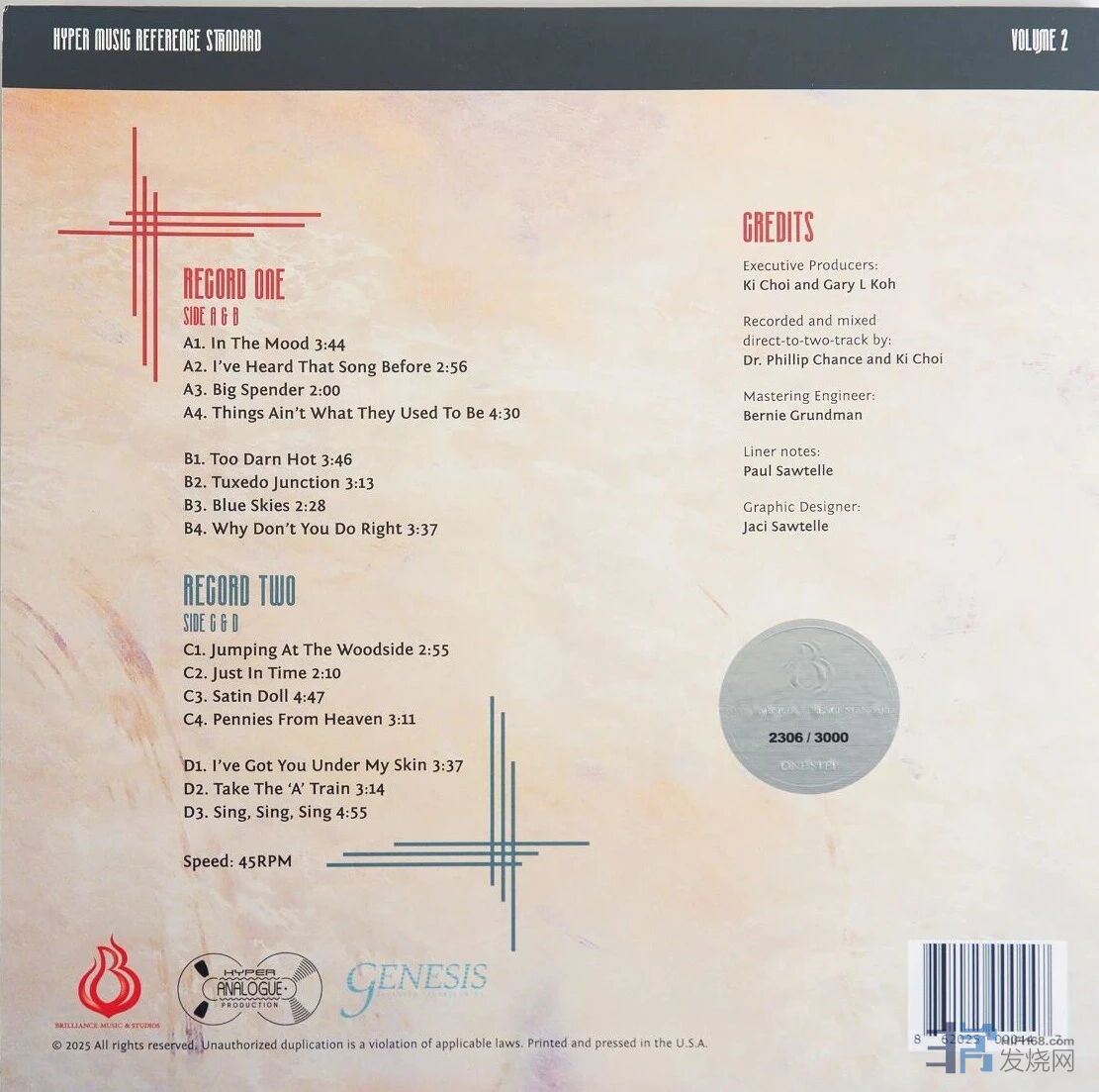 那么,无论录音还是制作都在美国,使用纯模拟开盘带录音,并且乐队编制更大的《HYPER MUSIC REFERENCE STANDARD VOLUME 2》能否再创溢价记录? 只限量3000套,喜欢的发烧友得抓紧下手了!
