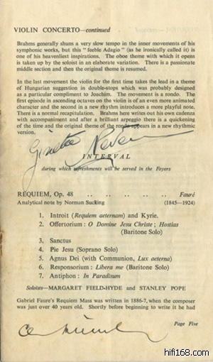 Charles Munch指挥利物浦爱乐的Brahms小协演出节目单,上面有两者的签名。