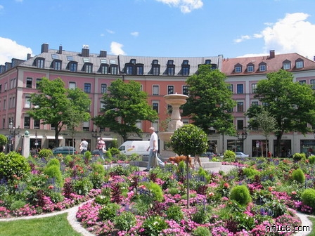 这张图有一点小,从Google Earth上截下来的。可以看到,在Theresienstrasse大街上,西边是两个美术馆。坐U2到Theresienstrasse站也可以。