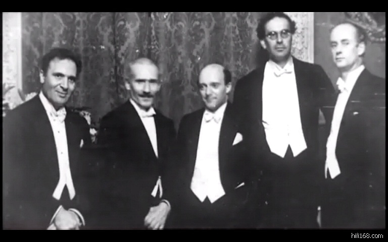 刚从视频上截图下来的,呵呵,1930年五位指挥家聚首柏林,给大家猜一猜。