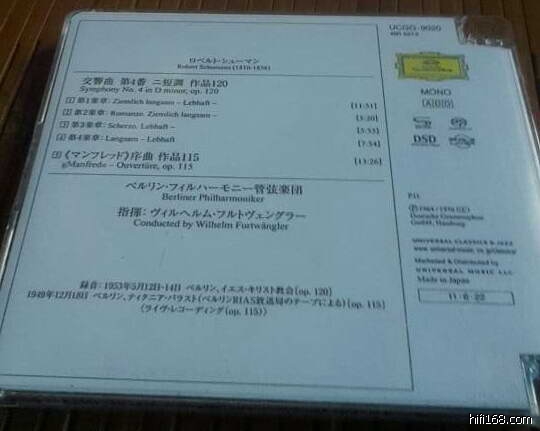 SACD作为一种比CD先进的音频存储格式越来越多的普及,上面上张 日本出版的DG富特指挥《舒曼第四交响乐和曼弗雷德序曲 》曾经出过N版普通CD,现在转为SACD发行当然立马收藏。