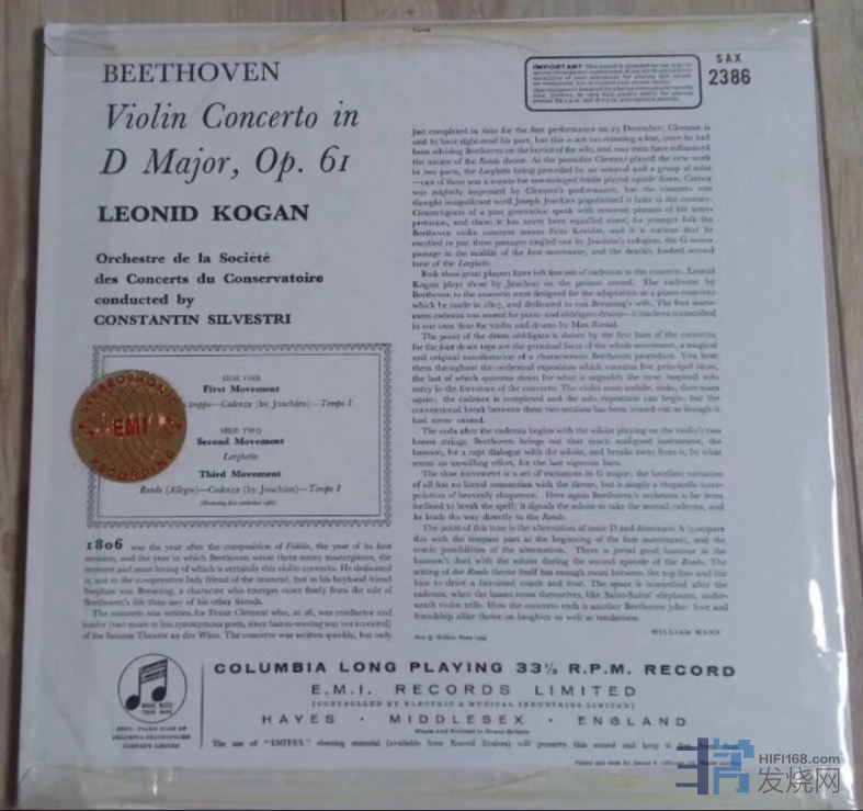 最近有烧友进了一张所谓未开封克刚贝多芬地球版碟(见图一和图二),如果我没记错,这张碟来自一荷兰卖家,当时他还夹杂了一些其它所谓未开封唱片。经过我犀牛鉴定,这应该是一张复刻碟。请参考原版该唱片封套图片(图三和图四)。简而言之:原版封套右上角STEREO标示为顶格位置,复刻该标示则与顶部有一定距离;其次原版封背右侧为翻折状,而复刻则没有。这张就是新近的复刻碟,黑心卖家为了卖出去,故意说所谓的未开封(因为盘标上原版与复刻很好判断),然后还特意把复刻封背上下边给做成原版装(复刻封背一般三边都无翻折现象),真是煞费苦心啊!