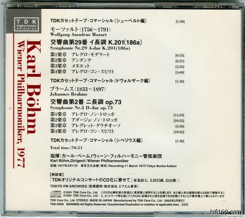 1971年4月开始,为了纪念“东京FM”开播1周年,拉开了“TDK原创音乐会”的序幕,在70年代众多大师纷纷来到日本演出,在那段立体声广播飞速发展的黄金年代,留下了许多的现场录音以作广播之用。1975年Karl Bohm(1894-1981)带领维也纳爱乐访日,不过由于是NHK主办的缘故,TDK没有机会留下录音,因此这个相同组合录音的机会拖到了1977年,应艺术家协会的邀请,Karl Bohm带领维也纳爱乐再度访日,不过协会开出6倍的广播费用,差点没吓死TDK的负责人,因这是民办FM,没能力支付昂贵的费用。幸好最后得到搞Fournier(1906-1986)独奏演奏会的熟人出面,以开价的1/4敲定转播权。在日本14场演出中,唯有这场1977年3月11日在东京文化会馆的演出能够录音而留下声音记录。