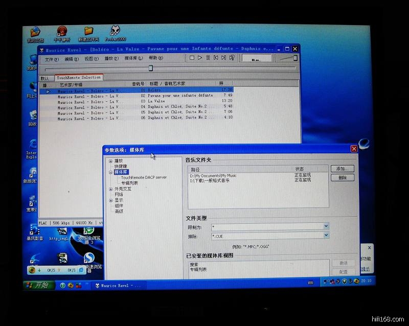 在E版的长贴《试听欧博高清7C、8C、景丰02、Linn 极点、MDAC 5、Z版东电、欧博DL6、度高HDAP 01播放器》的2818楼huxyu2003提供的方法,看到PCHIFI的遥控玩法,用IPAD控制电脑里 FOOBAR播放器,不由感叹人真是聪明,懒人推动科技进步啊。自己下了很多APE和最近下了一些高清格式的音乐,都躺在硬盘里睡大觉。其中就是懒的蹲在电脑那里选曲。现在有了那么好玩的东东,赶紧趁双休试一下,成功了,就可以用IPAD选曲了,即直观又方便。