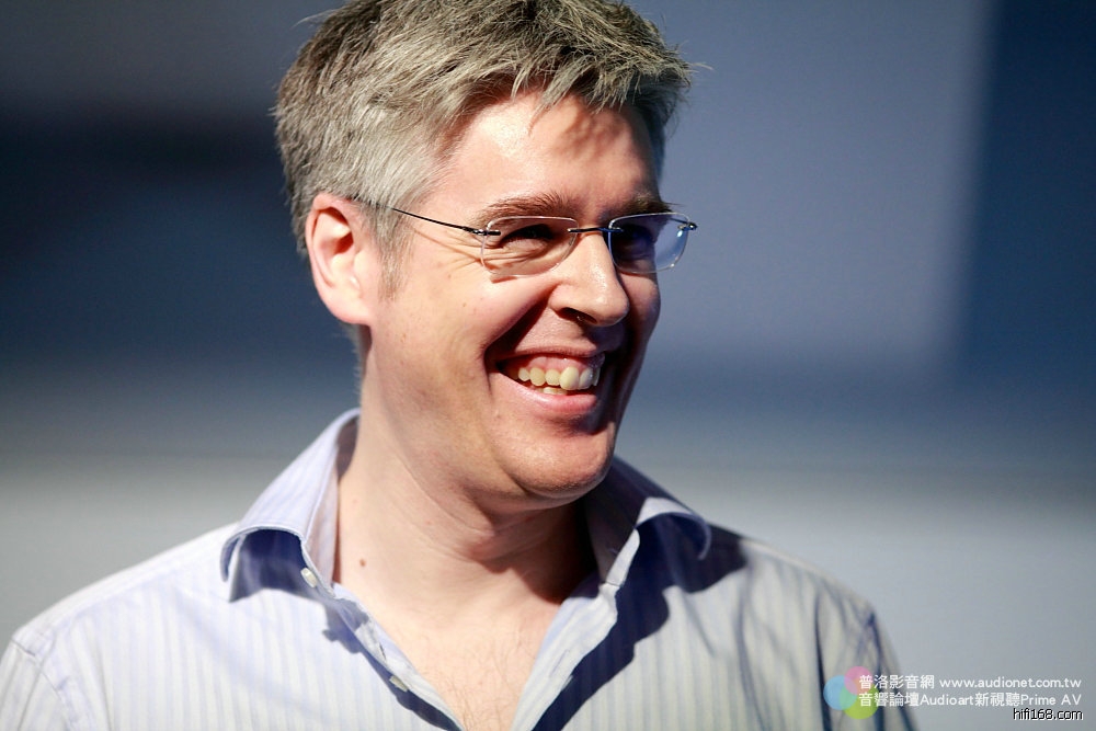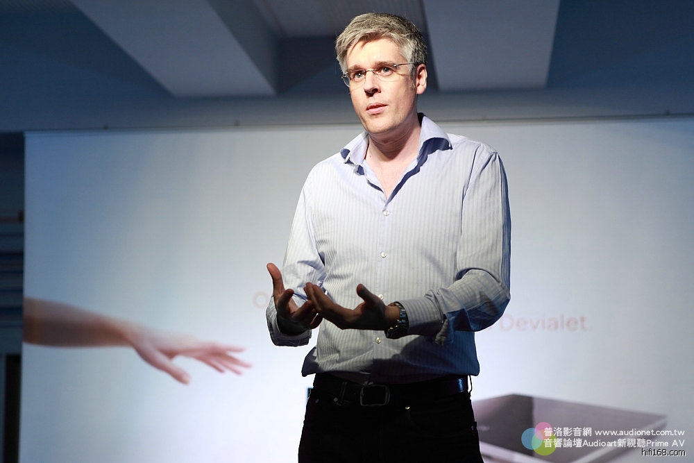 亞洲分公司總經理Andy主要負責講公司的歷史,以及發展,他今年40歲,目前住在新加坡,是英國人。才剛喜獲麟兒,晚上被小寶貝折騰得受不了,說這趟出差真舒服,每晚都睡得很好。哈哈,只要有小孩的都瞭解他的心情。他說英國人跟法國人平常都不對盤,他們同事間也經常以此開玩笑,不過真正相處還是很融洽,畢竟現在大家都有國際觀,尤其Devialet目前最注重的就是亞洲市場,當然要倚重取了韓國妻子、筷子拿得很好的Andy。Andy說他第一次陪老婆回韓國時,由於韓國筷子是金屬的,而且比台灣的還細還短,滑不溜丟,會見岳父岳母那餐他根本夾不起食物,不過現在已經很熟練了,跟老中一樣。
