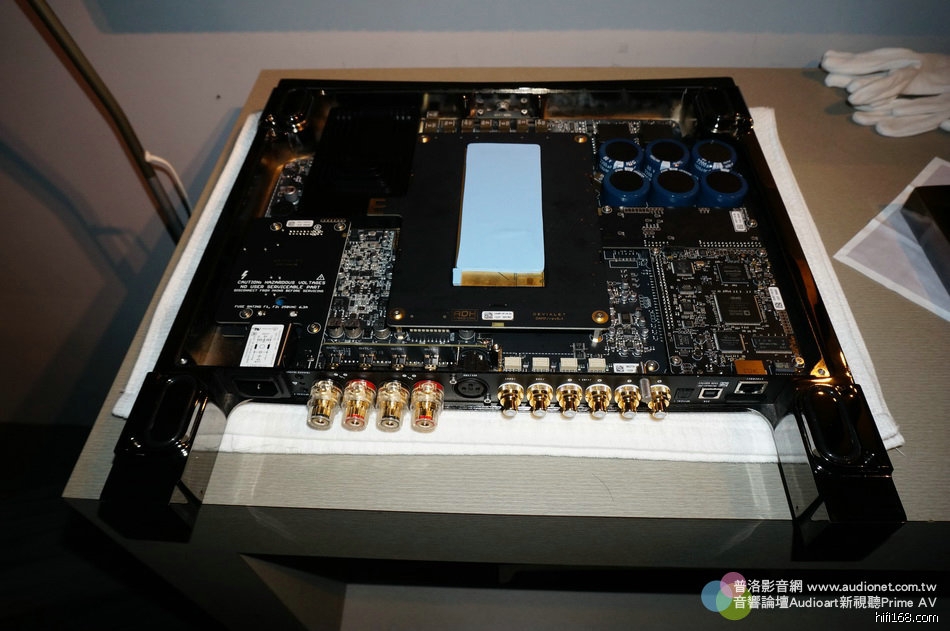 現場的楊先生再三強調,所謂ADH並非傳統D類,大家都誤會了。ADH的設計出發點是大部分人聆聽音樂時,實際使用的輸出瓦數大約都在5瓦左右,所以Devialet原始設計就是5瓦純A類。另外再以D類放大模組做助力,只要輸出功率超過5瓦,這塊D類輸出模組才會開始動作。所以,大部分時候,您聽到的都是純A類聲音。到底要怎麼證明這點呢?楊先生說,即使用家把D類模組拔掉,機器還是能夠正常唱歌,這足以證明是以純A類在運作的。