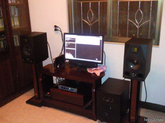 我现在调整了一下音箱的摆位,场感、定位和声音结像更为清晰玲珑了,总体效果是相当满意的。这系统还算不上很高档,全套加起来连线材、PC还不到4W,但感觉比不少5、6W元级的民用HIFI要好,性价比不错。说实话,如果能搞一套Prismsound Orpheus音频接口+ADAM S4X-V+SUB 12,那才是HI-END,不过那就要十几W的价格了