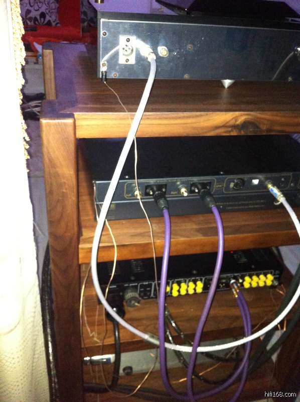 按照西湖音箱的设计理念,特别是西湖公司最近几年一直在研究的P.E技术要领:器材各个环节只要有金属的地方都应该进行接地,否则都不能称之为全接地处理了。目前我的系统有金属的器材包括:转盘、解码、前级、后级、隔离牛、音箱、脚架、避震钉垫等等,我的串联方式为:转盘>解码>前级>隔离牛>后级>音箱>脚架,接地引线由前级的专用接地口引出并与地线连接。请看下面几张具体的图片。