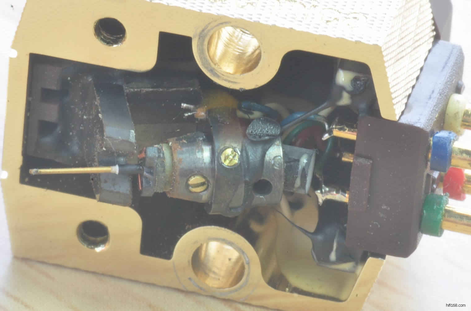内部机构完好,唱针、左右声道线圈、出入线、输出线在放大镜下清晰可见,无断无短路。