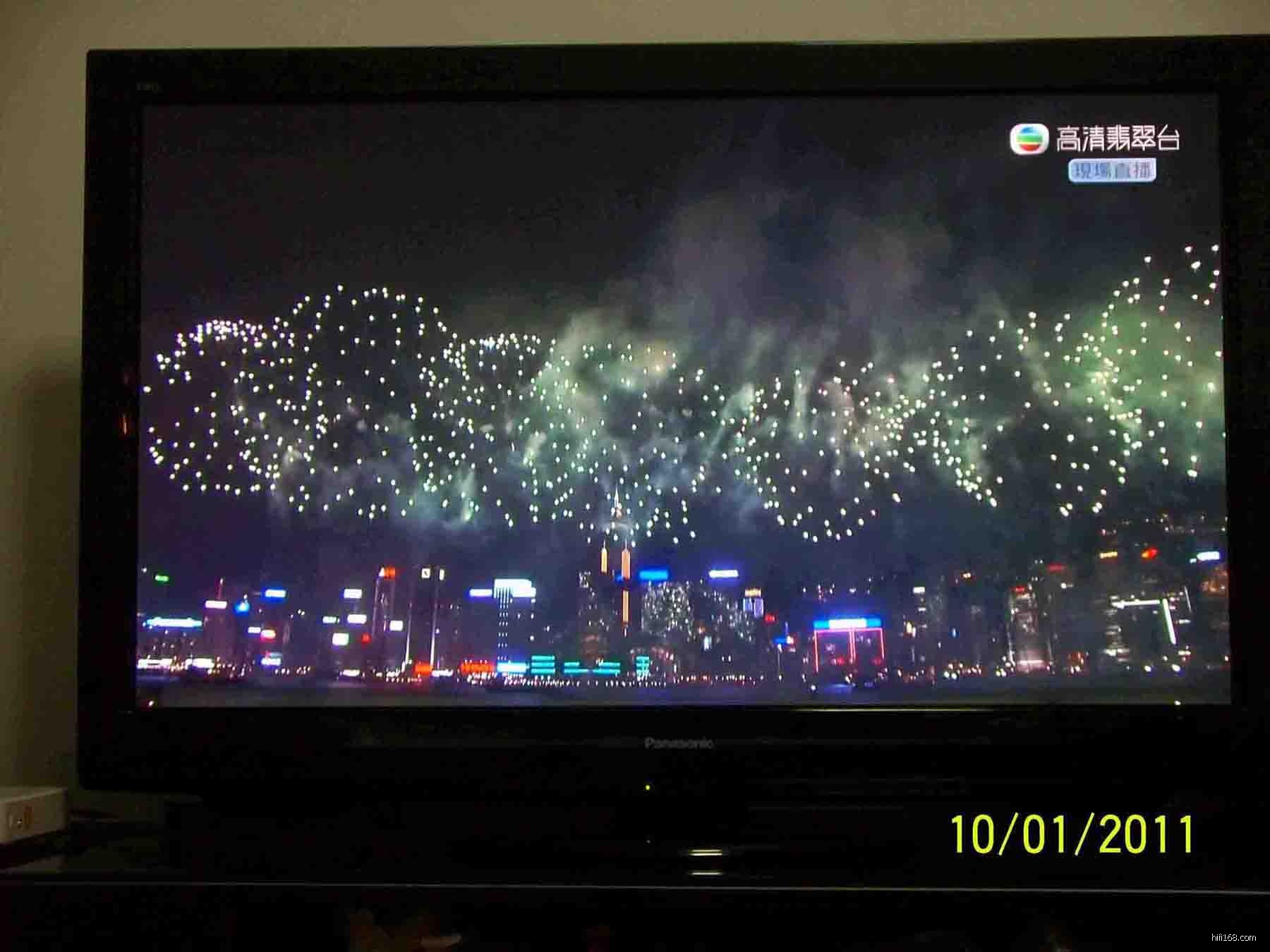 2011年香港国庆烟花汇演,电视直播的高清与普通机顶盒对比。