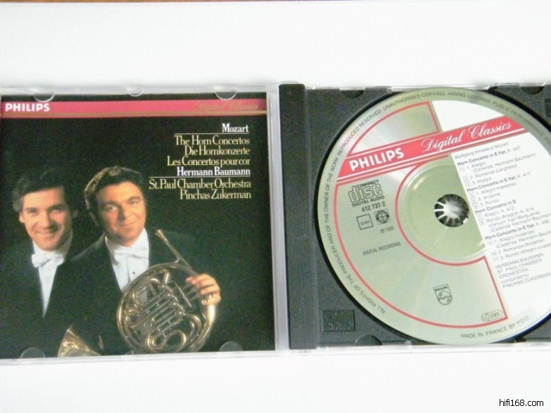 [font=楷体_GB2312][size=5](9)莫扎特四首圆号协奏曲,鲍曼独奏,祖克曼指挥圣保罗,法版PDO满银圈,有一丝拉痕及播放浅痕,100[/size][/font]
