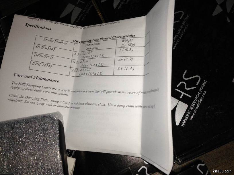那个太奢侈了吧,而且HRS也有专门的避震钉,我没有用,暂时用论坛里面的两大热门钉---镁声和德恒在试验,还有一些其他的杂七杂八的钉、垫,因为毕竟HRS的价格还是比较贵,全部上这个钉实在是吃不消。但是这个吸震板,好像还没有什么东西可以替代,所以只有咬咬牙掏钱买了。
