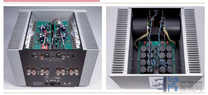 由于改用了1100VA的高效率多绕组密闭式防磁漏环型变压器,结合上述滤波电源储备,及把驱动直接并连到机箱金属大型沉热器,以高效率方式散走工作时所发出的高温:再加上精选匹配的MOS-FET场效应晶体功率管,AMP II-MK3后级功放于8欧负载下,可提供额定的2×275W;在4欧负载下额定的2×450W2欧负载下提升至额定的2×675W,而总谐波失真优于0.001%4Ω/1kHz/10W)。