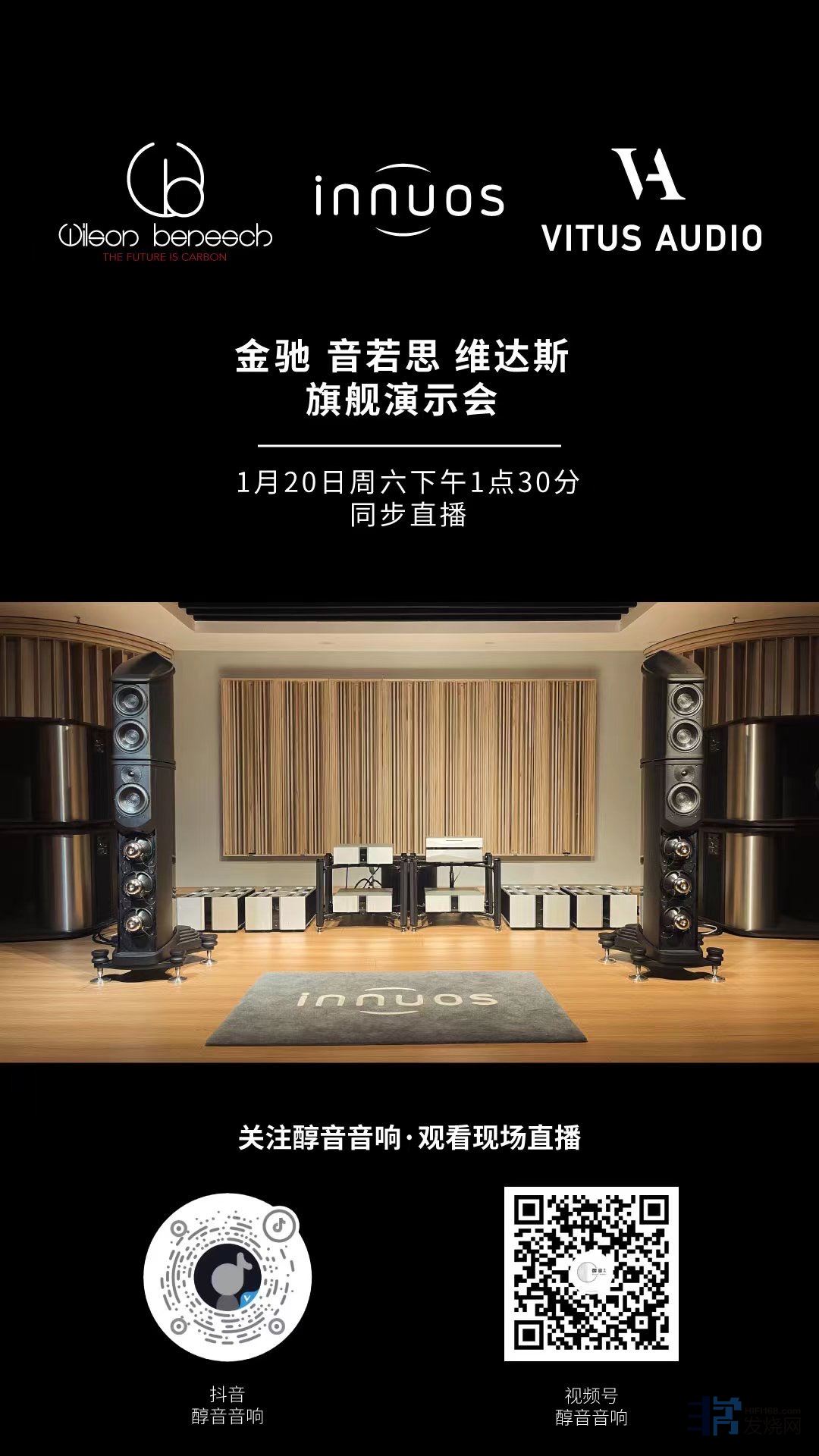 今天下午1:30的上海演示活动将同步直播,请提前关注醇音音响微信视频号和抖音