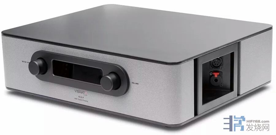 Vibrato首款一体机Model One的成功大大鼓舞了团队,遂沿袭Model One的设计理念推出更多高性价比的产品。NDP数字解码前级放大器外形上依然继承厂家在Model One数字解码合并式放大器上面的风格:全铝合金材料打造的铁灰色机身、弧形的边角、磨砂质感的面板、位于底板上的电源开关按键、较小的显示屏配合较小型的旋钮,显示出精致、有力同时又偏柔美偏古典的审美情趣。按个头来说,NDP属于传统音响的尺寸,作为桌面系统的话可能较大了一些,但它当然也有着匹配其体积的高性能。