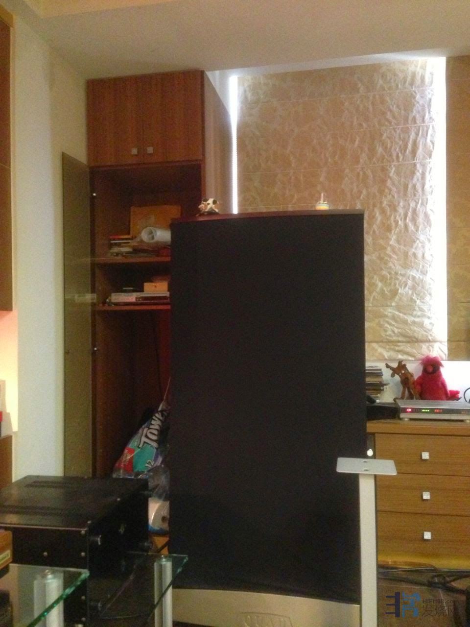 我的惨痛经验 - 早期装潢时留下木柜结构(音箱后方)来收纳音响器材。但最后还是乖乖的将所有器材移出。