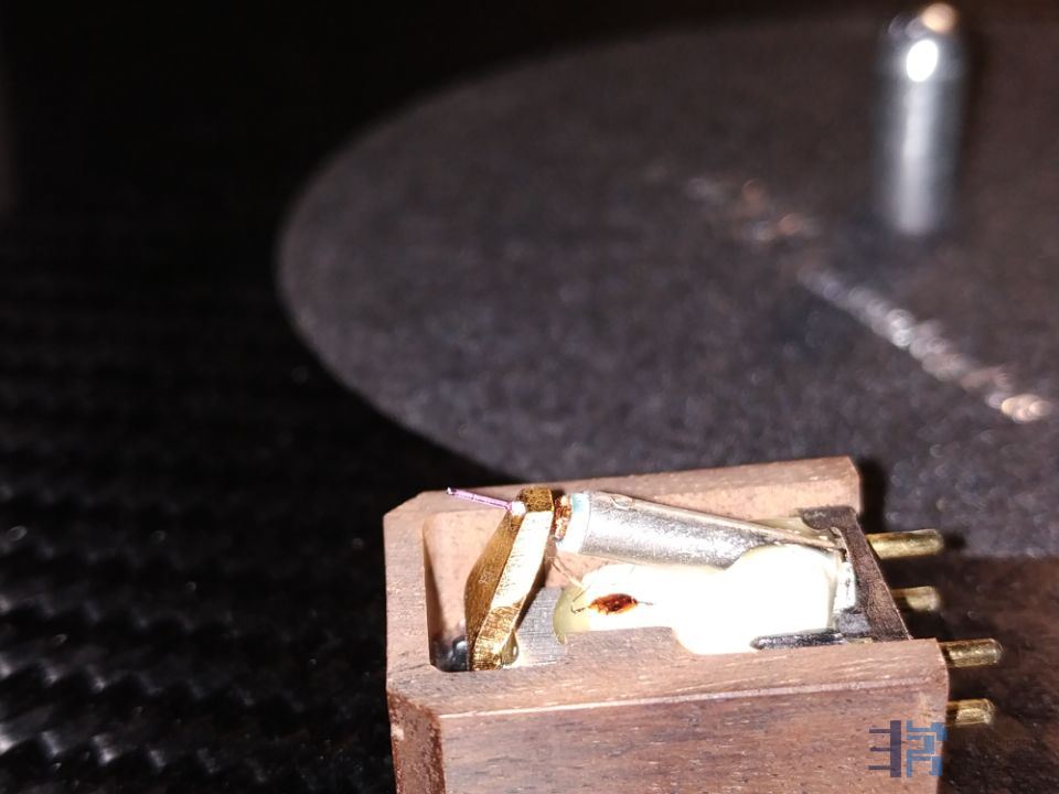 过了3天,林兄突然联系我,反映:今天发现唱针针杆好像有点歪,原来的支点臂很多张唱片内圈都会有失真,现在升级了气浮唱机和气浮正切唱臂,内圈还会失真? 是不是唱头有问题?