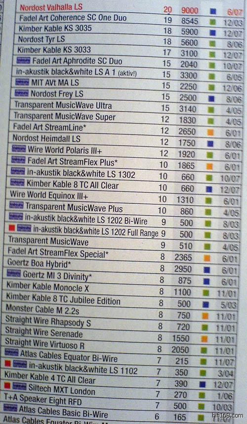 另外stereo杂志也有喇叭线榜单,按档次分成四级,不排名,而且排在前面的有一半是HMS...
