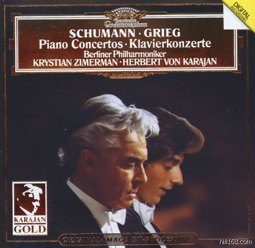 齐默尔曼演奏钢琴,卡拉扬指挥柏林爱乐乐团版是上世纪80年代最引人注目的版本。齐默尔曼那充满浪漫和激情的演绎,绝对是演奏格里格这部协奏曲的最有力元素。这位波兰钢琴家录制这部作品时虽然只有25岁,但演奏却相当的个人化。虽然少了利帕蒂那份与生俱来的天然情趣,但格调却非常贵族化。齐默尔曼的演奏,比科瓦塞维奇更有激情,更注重戏剧性的对比。他的戏剧性一刻,是留有以待,在累积到不可避免的霎那间如洪水般涌出。与此同时,齐默尔曼在抒情处也相当细致迷人,经常在“浪漫”的地方久久徘徊。他善于运用不同的音色,营造出浓烈的对比,乐句修饰精美,大胆敲击的强音和弦随时散发出意料不到的光辉。加上指挥大师卡拉扬的相辅相成,音乐推展的美妙而又荡气回肠。和利帕蒂、科瓦塞维奇相比,这是轻微戏剧化、浪漫浓烈的格里格演绎。
