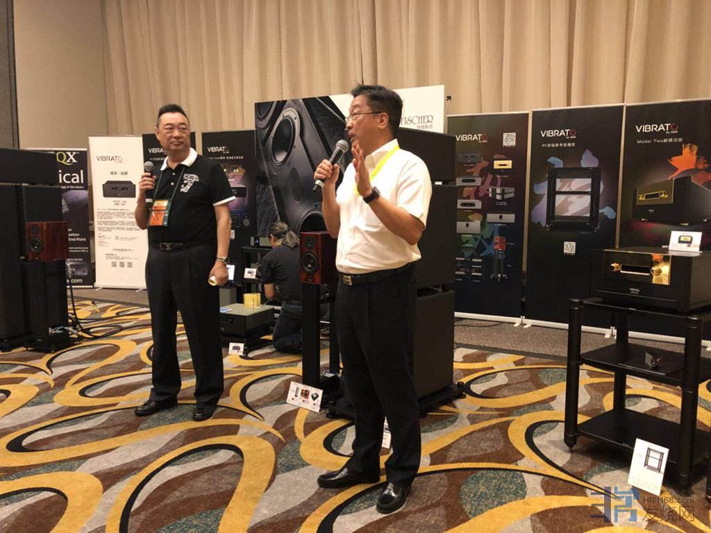 这次香港音响大展代理个个拿出看家本领。大件,豪华,美观,靓声,爆棚的场面宣战。今天富盛音响这个气氛真正令人大开眼界,一台超级蓝牙适配器Vibrato Net ·Work。德国FISCHER&FISCHER炭质板岩旗舰音箱,文杰影音VlBRATC by NSR高比特数播,MODEL ONE功放,文杰VlBRATC by 380后级功放,MODEL TWO旗般功放统统带来香港让大家感受欣赏。