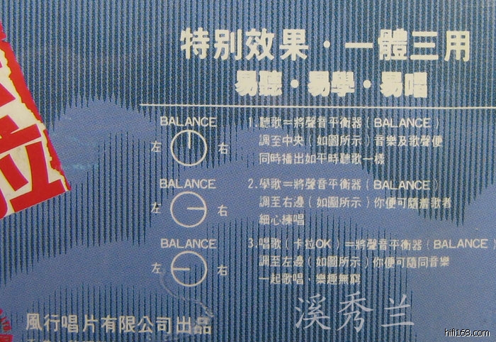这碟有趣,用CD机播放,左声道全是乐器的伴奏声,右声道则全是是歌者的声音。我干脆将功率放大器左声道的信号线拔下来,只听一个声道、一个喇叭,相当于听她清唱。呵呵,模拟味更足,更有当年上海滩的神韵!!!