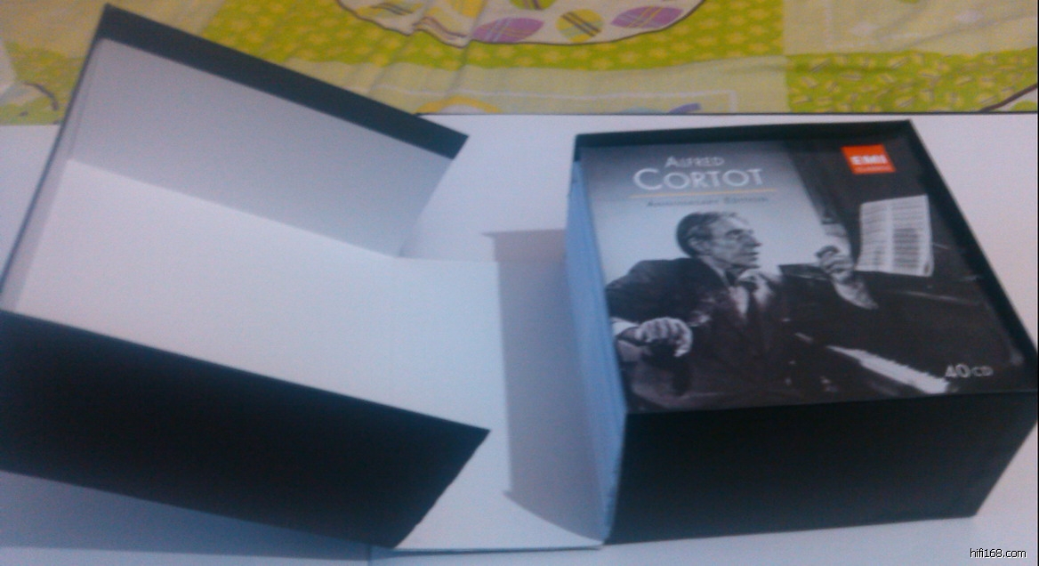 经过近10天的“快”递,我在李员外家订购的EMI ALERED CORTOT ANNIVERSARY EDITION 40CD,终于被强大无比的申通快递送到了南昌长运分部。本人打了N个电话,竟然无法打入,经过我上网+问路+步行的“三合一”,终于自己亲自在快递公司站点拿到这套CD。上实物图片供大家观赏