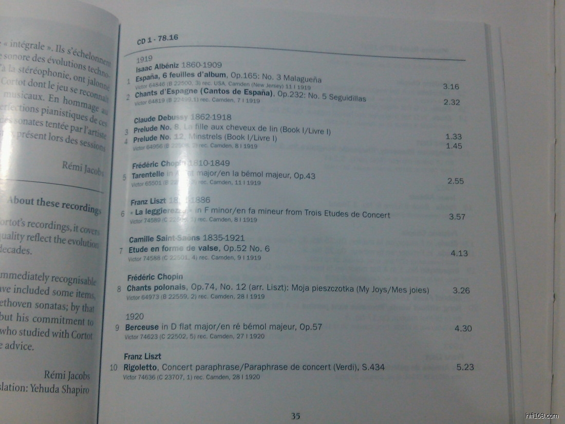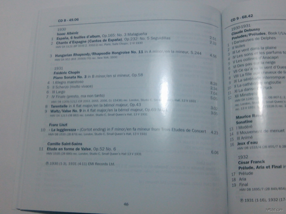 《视觉》现场直播,EMI CORTOT 40CD全部曲目图片
