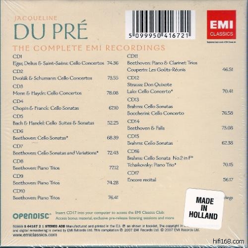 杜普蕾的录音大部分在EMI,乐友们一定都有单张的收藏了。若是买EMI 2007年发行的17-CD包子,可把它们一网打尽。