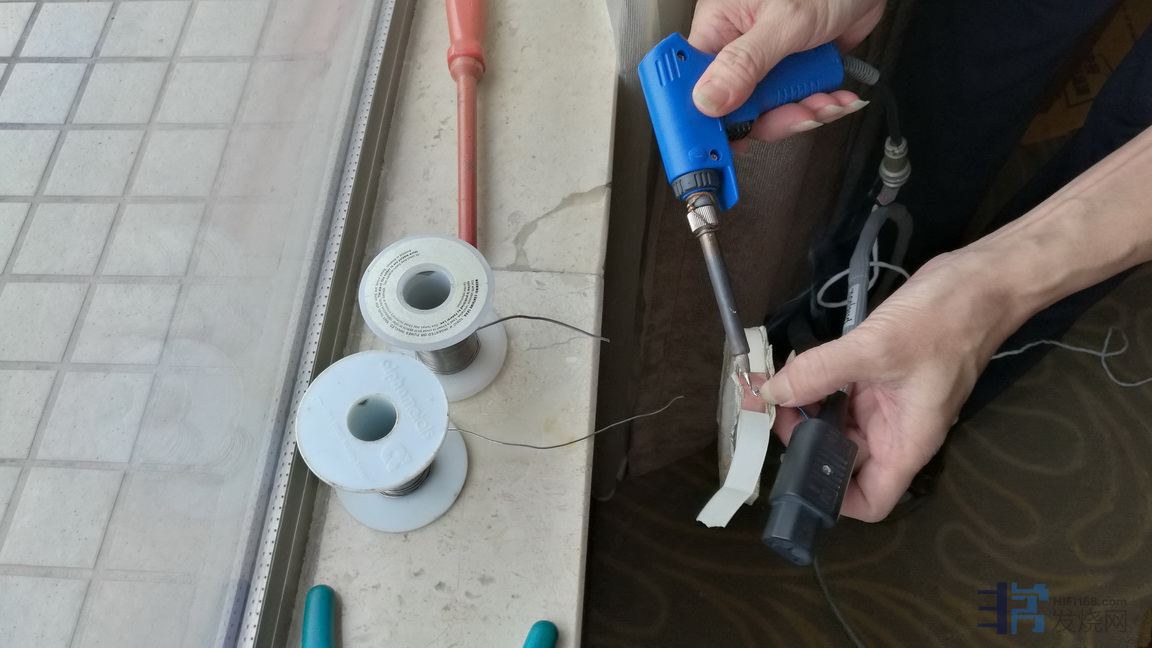 4、同是在插头尾包膜的过程,看到他的电源线插尾的夹件与线基接驳是焊接的。前辈解析焊接的效果比较厚实,个人喜欢的风格。