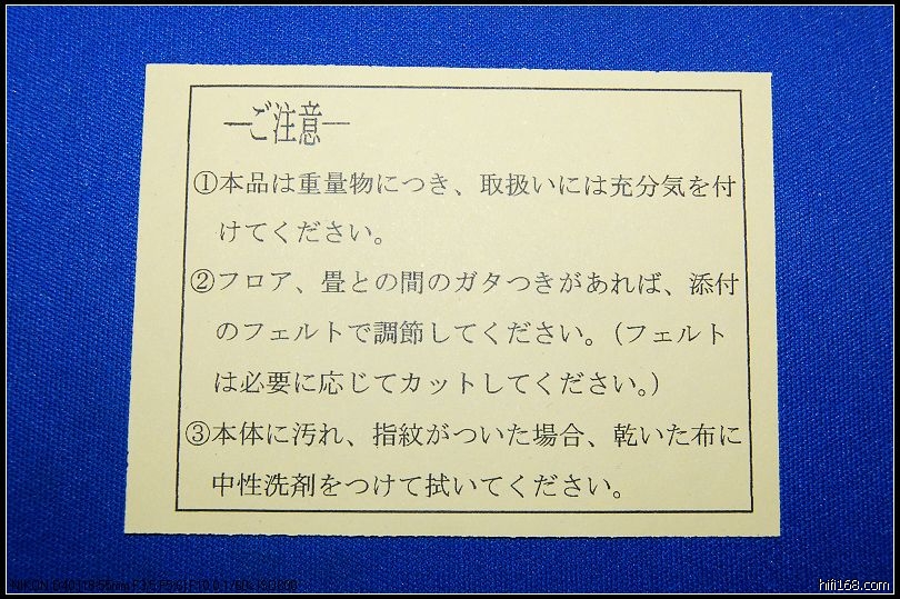 风叶之声78老兄好!这块板我用来垫付照过相一下的了,前级三KG重,脚下有圆周纸垫付着的,照完相拿下打包的,安心用就是了,只因为我买的是SUB-R50G的55MM厚的板,而且日本佬却发错这块给我,我知道他是商品货,打开才知道货不对版,所以只照相后收好等营长发落啦,放假那几天都忙碌考活动和游玩,没有拿来长听的,因营长之前叫写钉和板的听感,故有此念头留下影印,我看过的东西是正货的,大家都是烧友,不是玩玩吗,用得放心就是了.;P