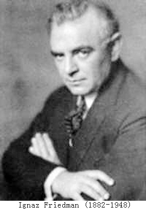 波兰钢琴大家Ignaz Friedman(1882-1948),Theodor Leschetizky(1830-1915)的高足之一,Artur Schnabel(1882-1951)的师弟。他的录音生涯非常短暂(1925-1936),留下的录音不多,不过他的演奏让人难忘,他的演奏非常灵活多变,不拘泥于乐谱,是非常个性的钢琴家。